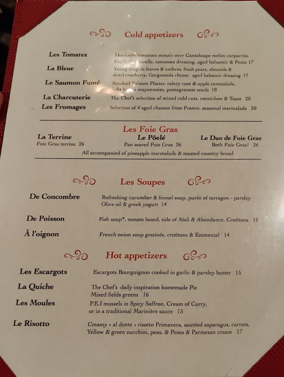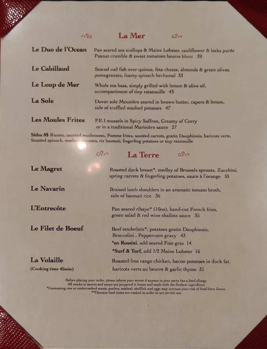 Diners rave about the offerings, as evident from comments like those from customer Oleksandr M., who relished the escargots and duck, both receiving five-star accolades. Meanwhile, znookworm notes the unbeatable prix fixe menu during Dine Out Boston as a dream, highlighting a trifecta of delectable courses including Terrine and Chocolate Mousse.