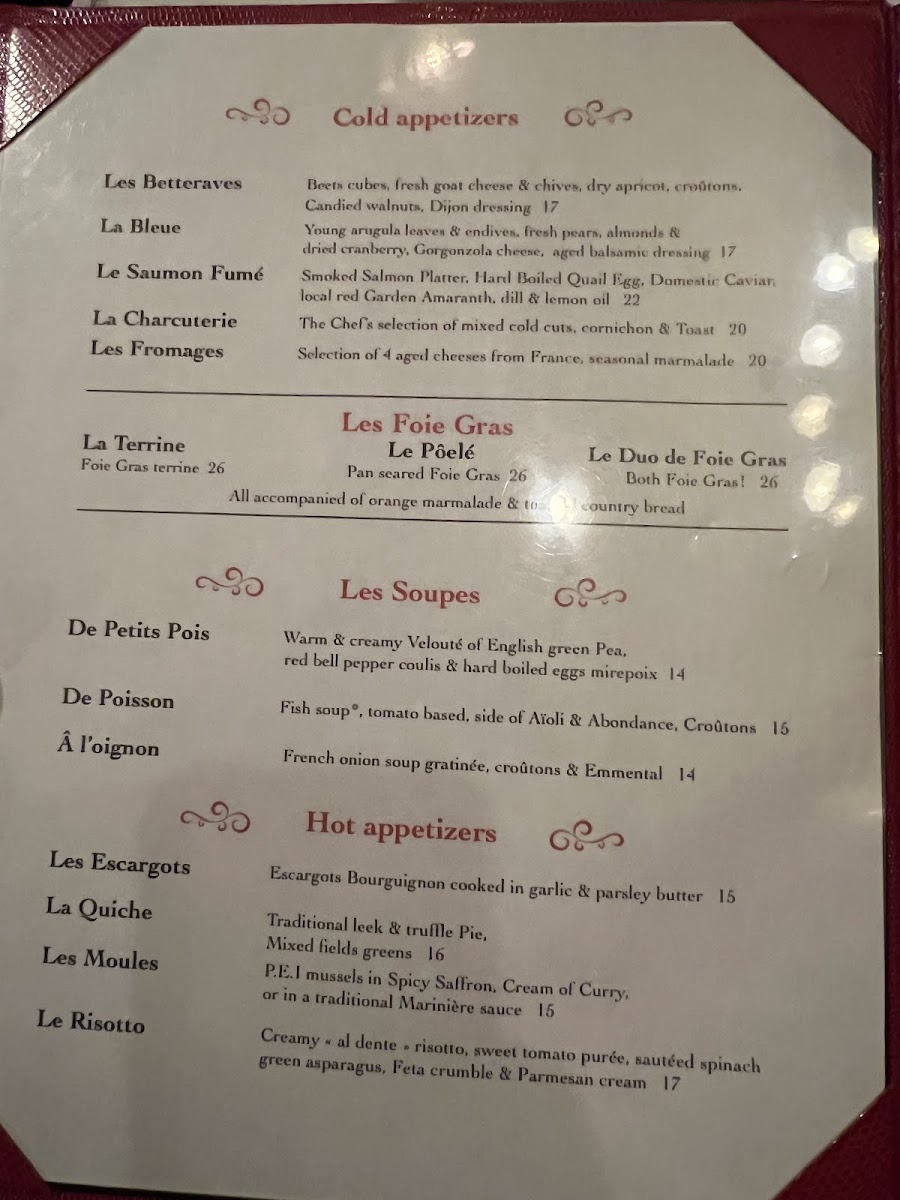 The culinary offerings at La Voile are a true testament to French gastronomy. The restaurant's Dine Out Boston menu showcases a range of meticulously crafted dishes that celebrate local ingredients and classic techniques. For starters, indulge in the Warm & Creamy English Peas Velouté topped with bacon bites—an elegant preludeto your meal. Then, for the main course, the L'Entrecôte–a succulent pan-seared ribeye paired with handcut Pommes frites and infused with a rich red wine and shallots sauce for just $27–is simply unforgettable. If you’re curious to experience a piece of French tradition, don't miss the Le Bourguignon, featuring tender braised beef shoulders swimming in a robust red wine sauce, a dish that epitomizes comfort and flavor at $30.